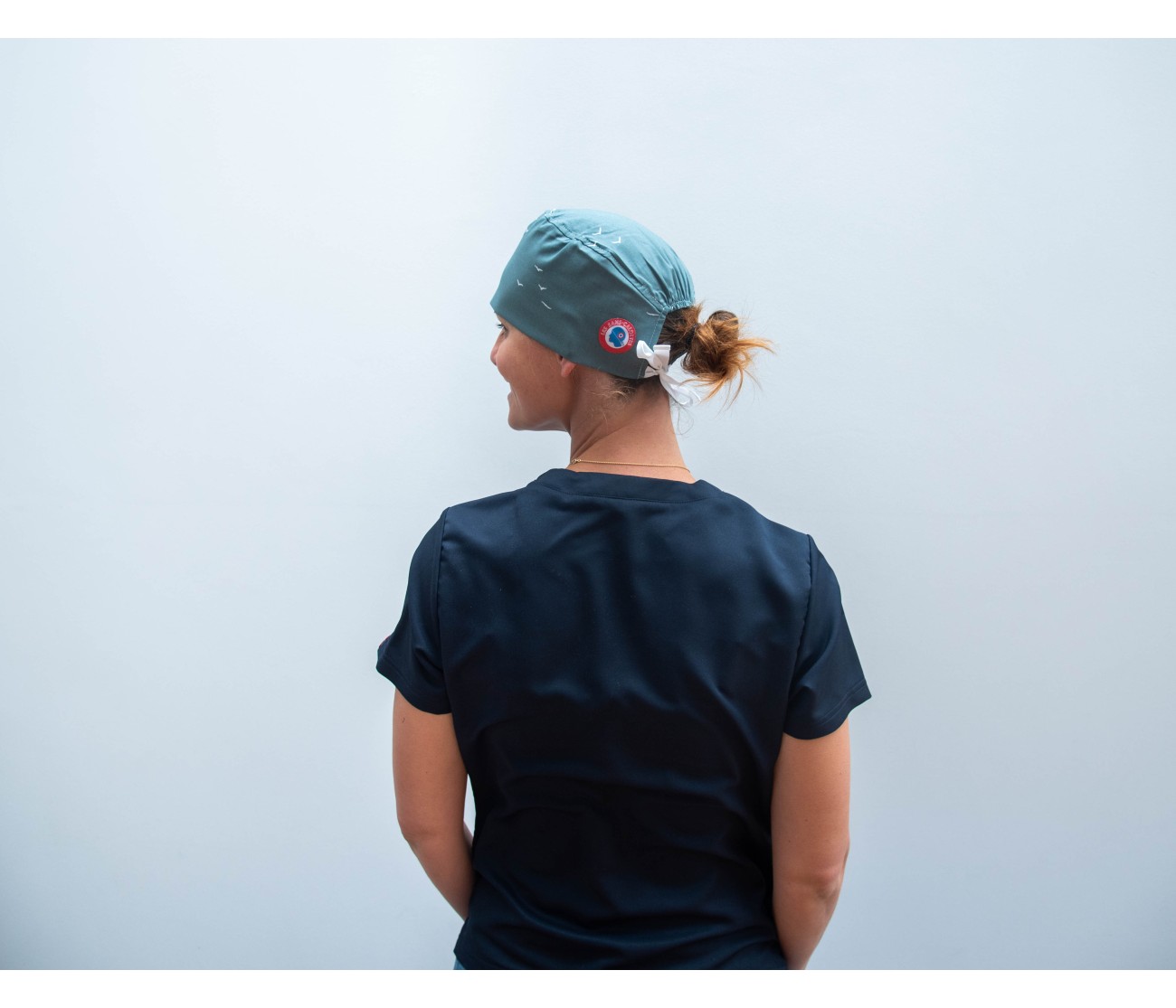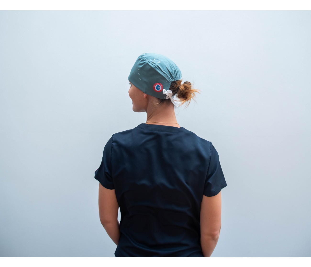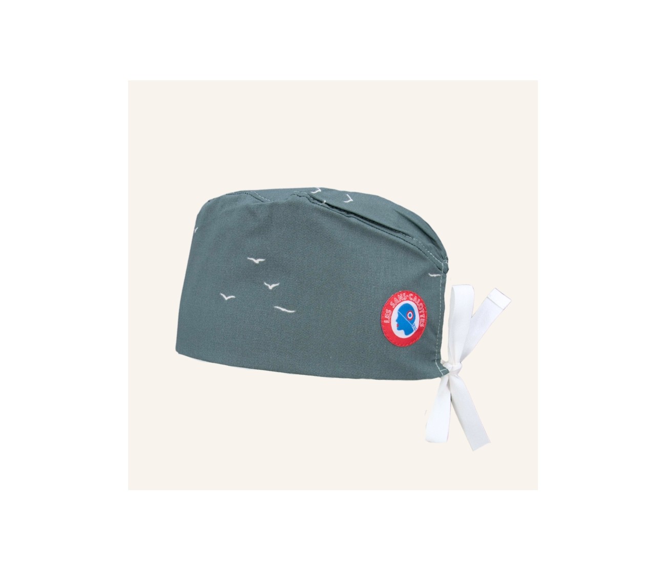 Calot en coton gris vert aux motifs blancs de silhouettes de mouettes et goélands