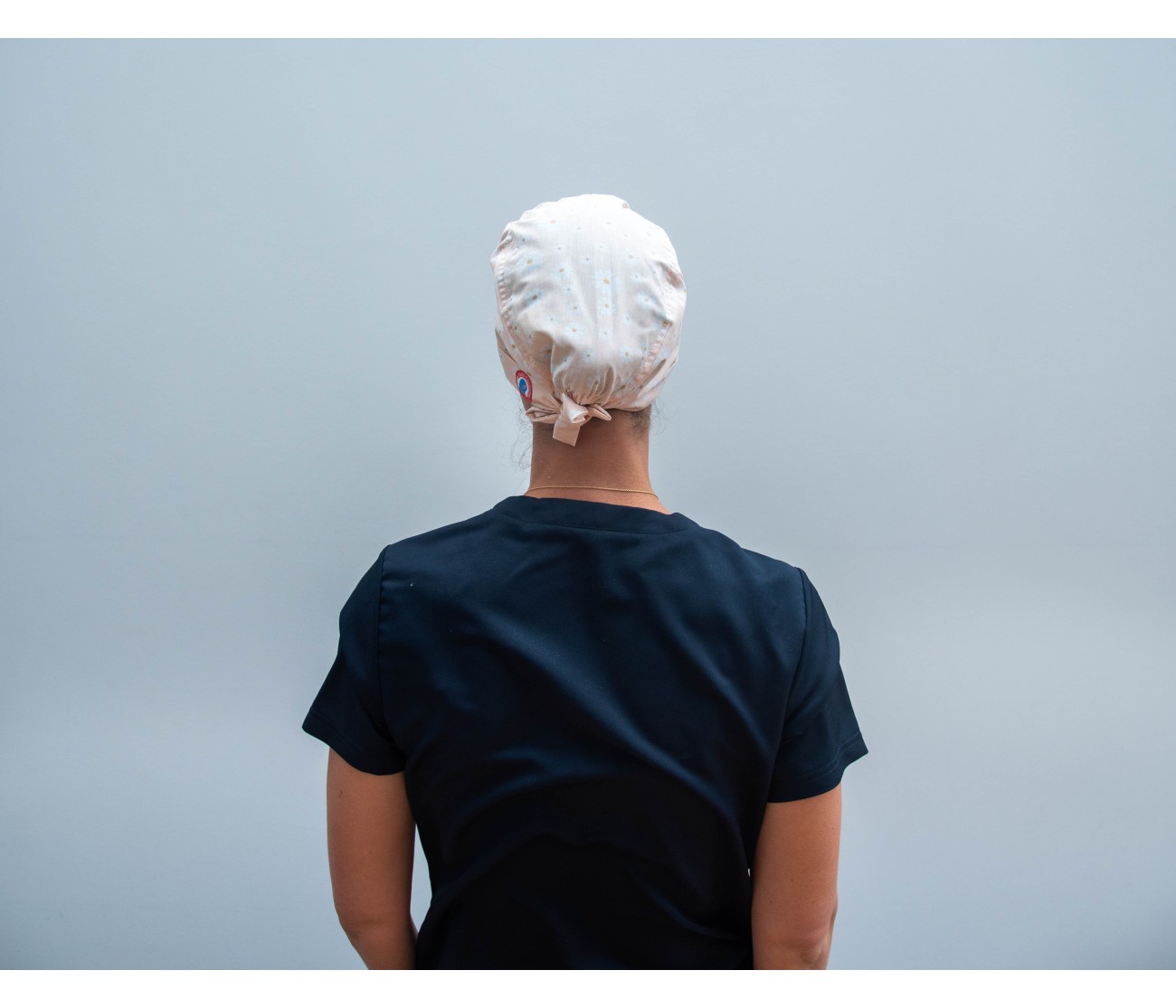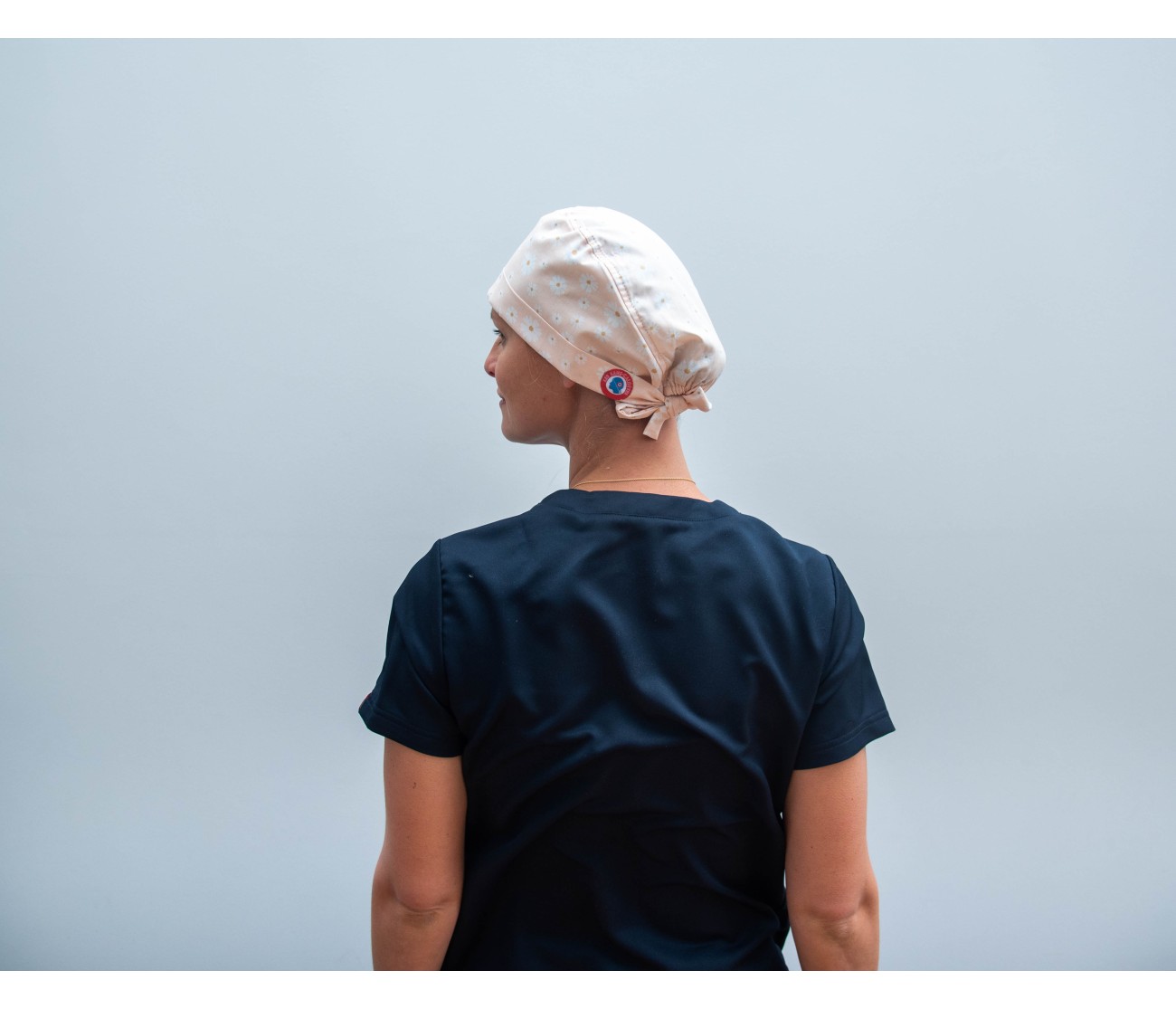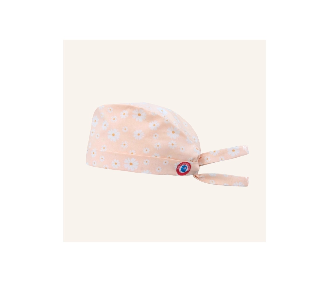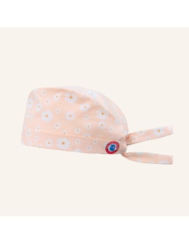 Calot de bloc en coton rose très clair, aux motifs de marguerites