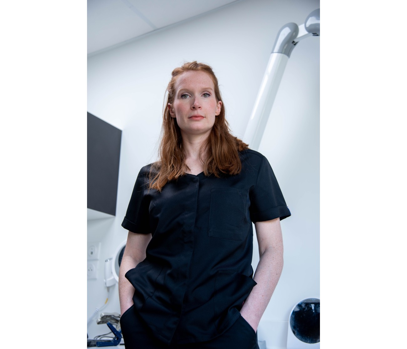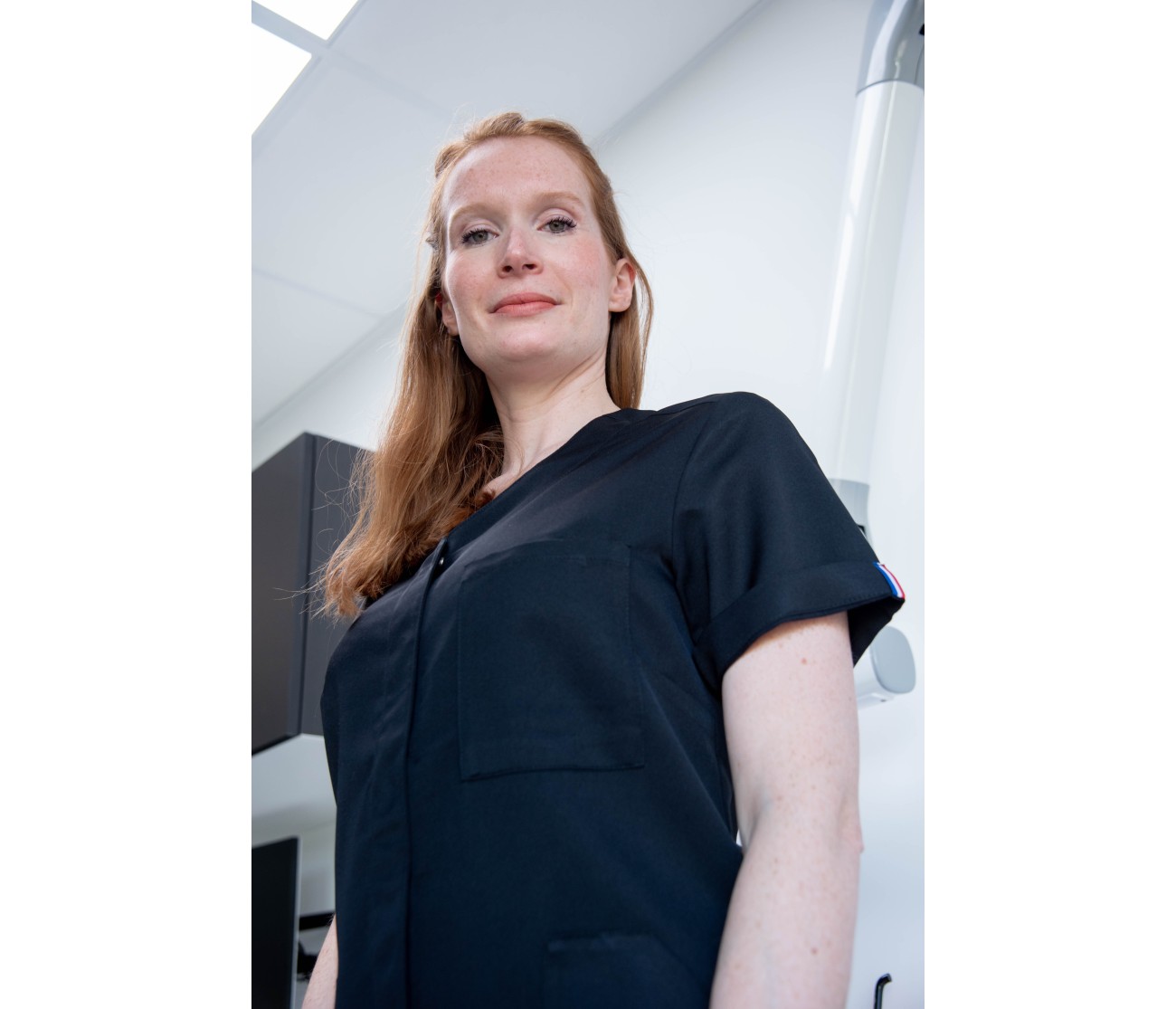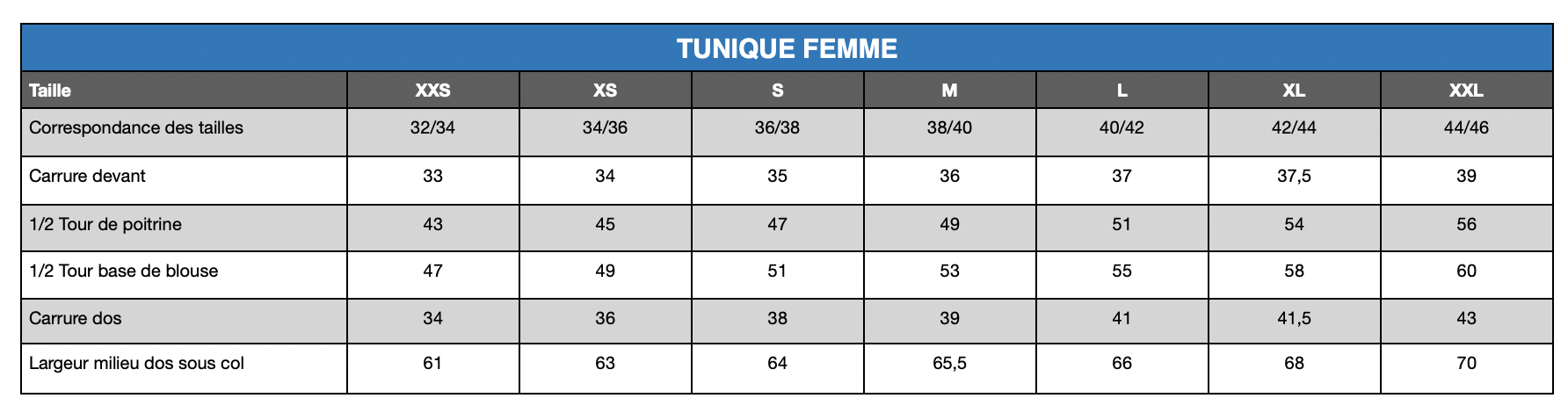 - Tunique grise : Sarah, qui est orthodontiste, porte une tunique XS et met habituellement du 34.