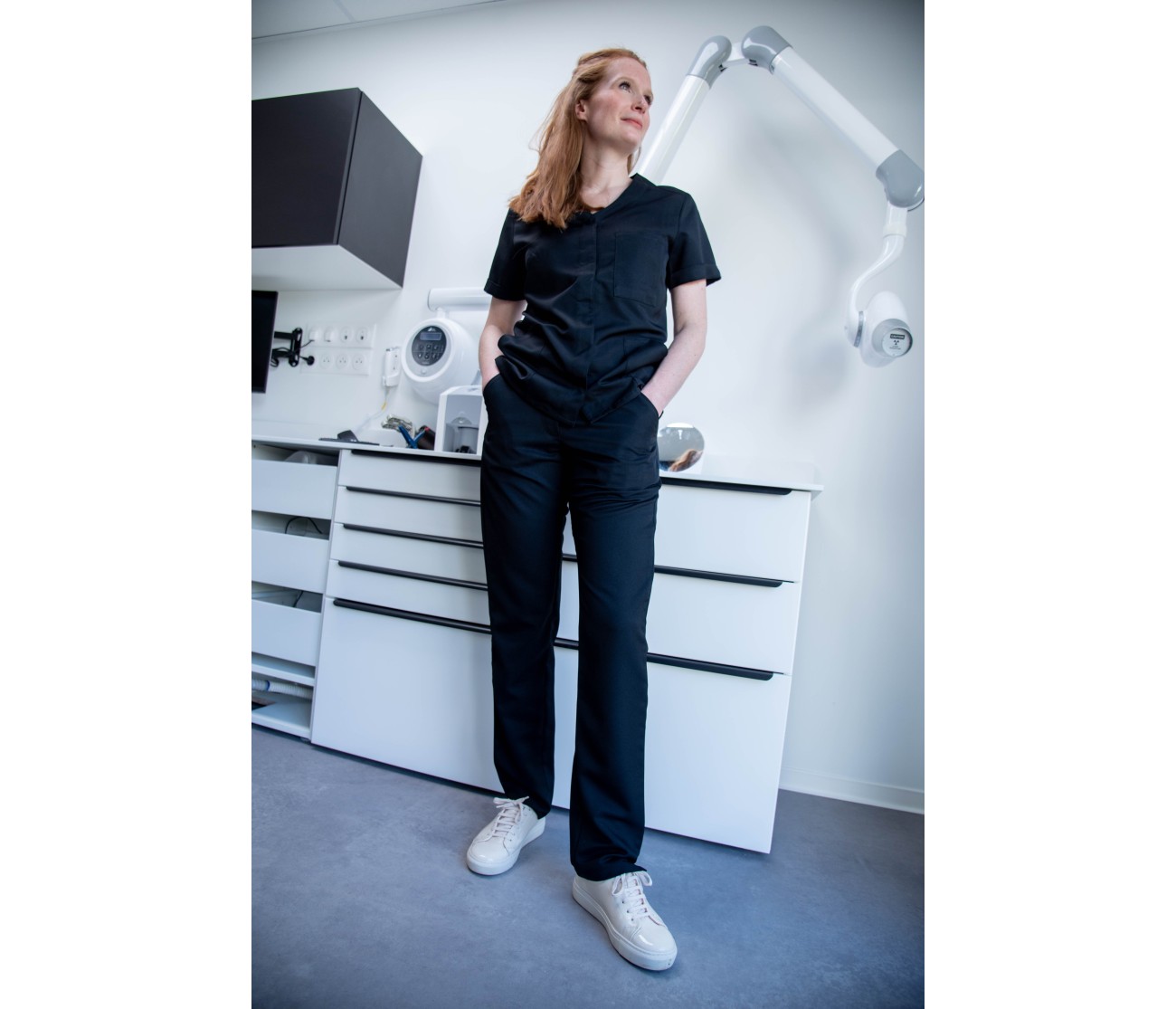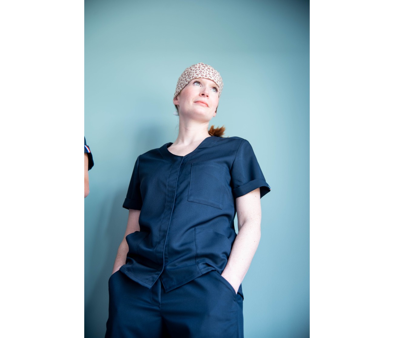 - Tunique bleu marine et noire : Laura, qui est dentiste, porte une tunique M et met habituellement du 38.